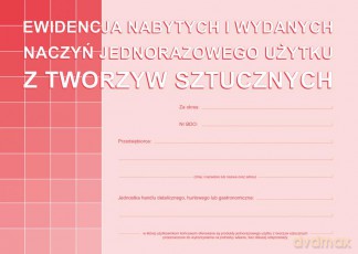 Ewidencja nabytych i wydanych naczyń jednorazowego użytku z tworzyw sztucznych Ewidencja nabytych i wydanych naczyń jednorazowego użytku z tworzyw sztucznych
