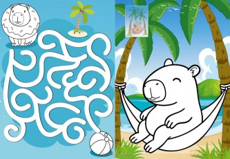 Kolorowanie z naklejkami. Kapibara na wakacjach Kolorowanie z naklejkami. Kapibara na wakacjach