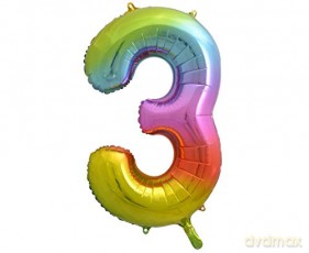 Balon foliowy Cyfra 3 tęczowa, 85 cm Balon foliowy Cyfra 3 tęczowa, 85 cm