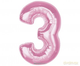 Balon foliowy cyfra 3 jasnoróżowa Smart 92cm Balon foliowy cyfra 3 jasnoróżowa Smart 92cm