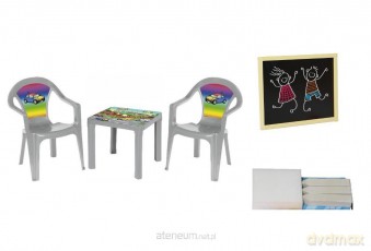 Stolik i dwa krzesła + tablica pastel szary Stolik i dwa krzesła + tablica pastel szary