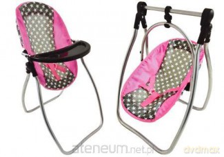 Huśtawka dla lalek 2w1 Alice gwiazdki szaro-różowa Huśtawka dla lalek 2w1 Alice gwiazdki szaro-różowa