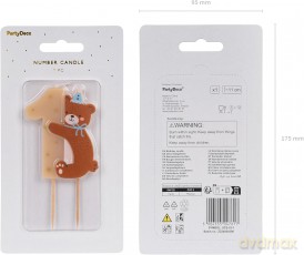 Świeczka urodzinowa 1 z misiem mix 7cm Świeczka urodzinowa 1 z misiem mix 7cm