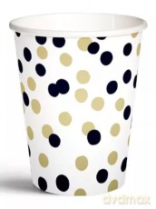 Kubki papierowe 250 ml, złoto-czarne confetti (8 sztuk) Kubki papierowe 250 ml, złoto-czarne confetti (8 sztuk)