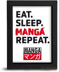 EAT SLEEP MANGA REPEAT - Kraft Frame Black - Asian Art EAT SLEEP MANGA REPEAT - Kraft Frame Black - Asian Art