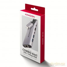 HMC-6G2L Wieloportovy hub USB 6in1, 10Gbps, 2xUSB-A, 1xUSB-C, HDMI 4K/60Hz, PD 100W, GLAN, 15cm USB-C kabel