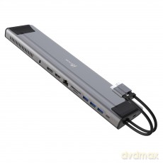 HMC-UFO Wieloportowy hub USB 9in1, 10Gbps, 2x USB-A, HDMI 4K/60Hz, M.2 NVMe/SATA, audio, PD 100W, SD/microSD, GLAN, 65cm USB-C kabel