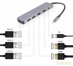 Adapter USB-C Hub USB-C PD HDMI x2 USB 3.0x3 Adapter USB-C Hub USB-C PD HDMI x2 USB 3.0x3