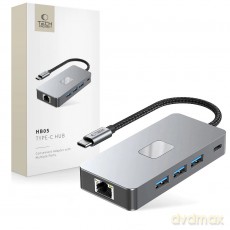 Adapter Tech-Protect HB03 HUB Adapter 5w1 USB-C + USB2.0 + USB3.0 + RJ45 - szary Adapter Tech-Protect HB03 HUB Adapter 5w1 USB-C + USB2.0 + USB3.0 + RJ45 - szary