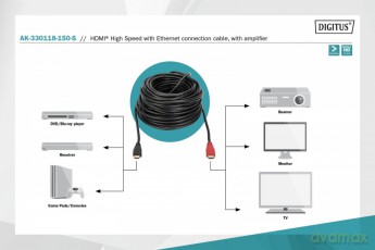 Kabel połączeniowy HDMI HighSpeed z Ethernetem ze wzmacniaczem 4K 30Hz UHD HDMI A/A M/M 15m Kabel połączeniowy HDMI HighSpeed z Ethernetem ze wzmacniaczem 4K 30Hz UHD HDMI A/A M/M 15m