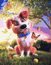 Malowanie po numerach - Pies i motyle 40x50 cm Malowanie po numerach - Pies i motyle 40x50 cm