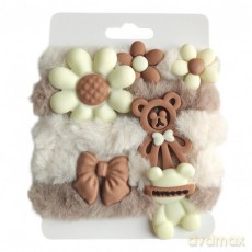 ECARLA Zestaw frotek gumek do włosów 5w1 Puchate na plakietce Brązowo-Białe GUM174 ECARLA Zestaw frotek gumek do włosów 5w1 Puchate na plakietce Brązowo-Białe GUM174