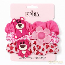ECARLA Zestaw frotek gumek 3w1 na plakietce Różowe misie kwiat GUM190 ECARLA Zestaw frotek gumek 3w1 na plakietce Różowe misie kwiat GUM190