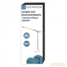 Svensson Lampka biurkowa/latarka 2w1 AMSTERDAM magnetyczna odpinana 8W biała Svensson Lampka biurkowa/latarka 2w1 AMSTERDAM magnetyczna odpinana 8W biała