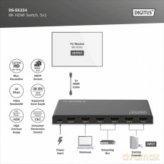 Przełącznik/Switch 8K HDMI 5x1, 60Hz (4:4:4), HDR, HDCP 2.3, pilot, Czarny Przełącznik/Switch 8K HDMI 5x1, 60Hz (4:4:4), HDR, HDCP 2.3, pilot, Czarny