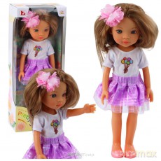 Lalka w fioletowej sukience długie brązowe włosy Lalka w fioletowej sukience długie brązowe włosy